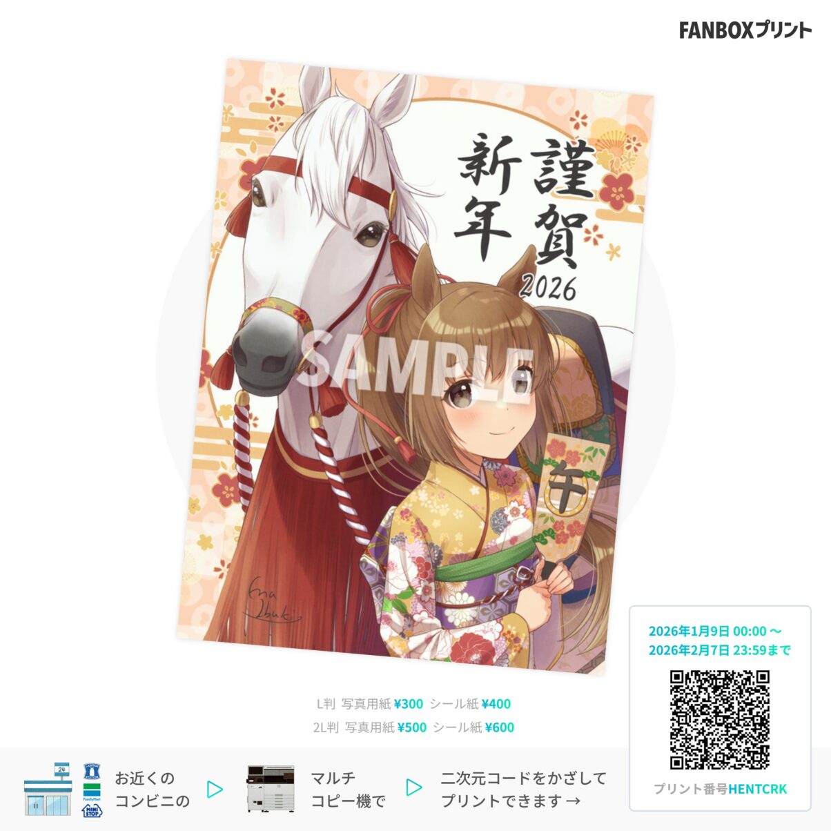年賀絵をFANBOXプリントに登録しました! 販売期間は1月9日から2月7日までです。 よかったらプリントしてみてくださいねー✨✨
